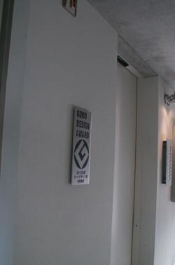 - 1階自動扉横に取り付けられた「Good Design Award」プレート。