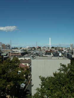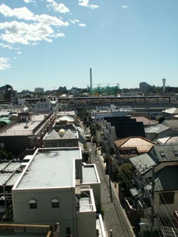 - 真下に甲州街道(欅の街路樹)、400m先に高速4号線。